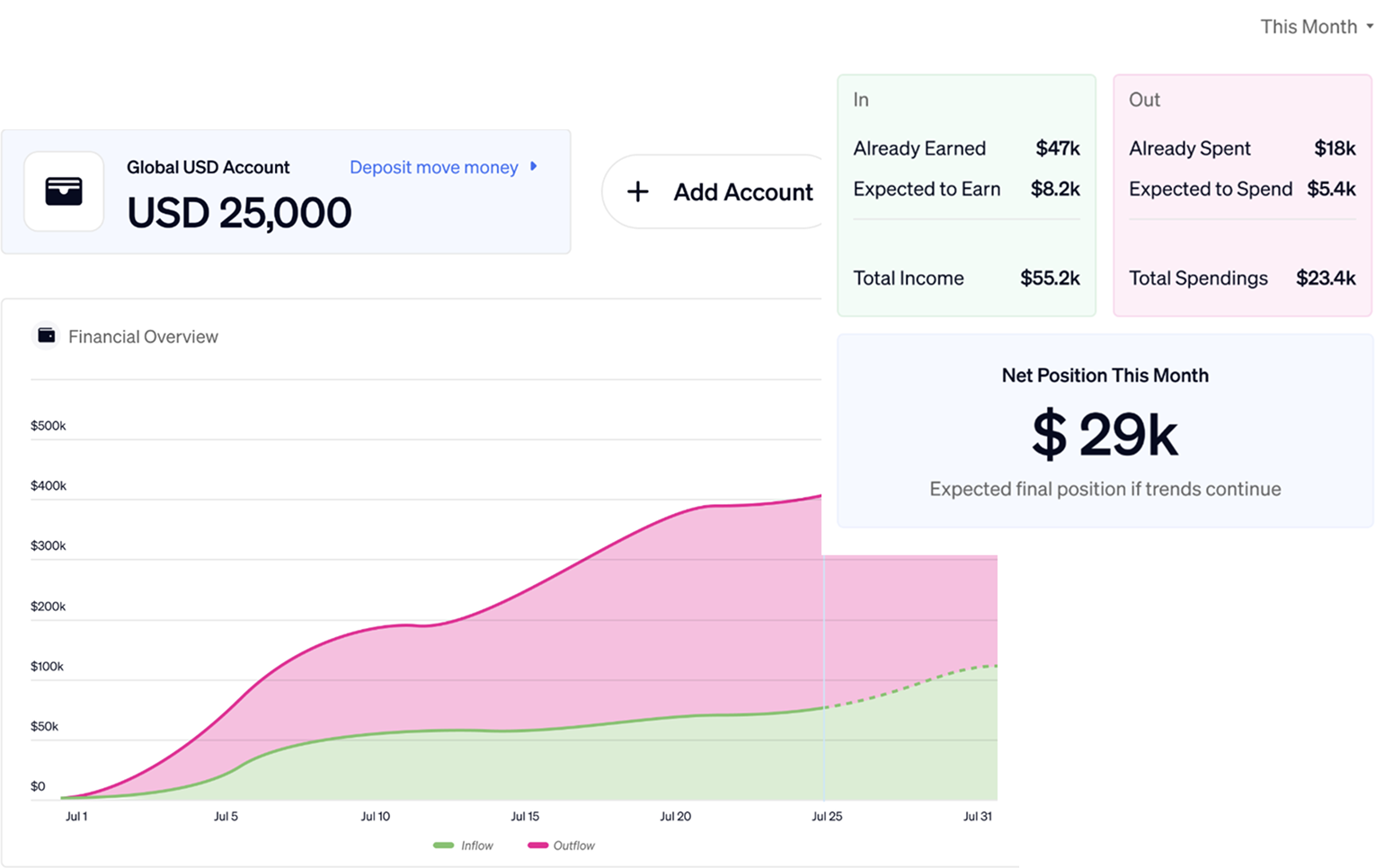 Start with a dedicated USD account, fund it instantly, manage multiple entities, and keep every dollar organized.