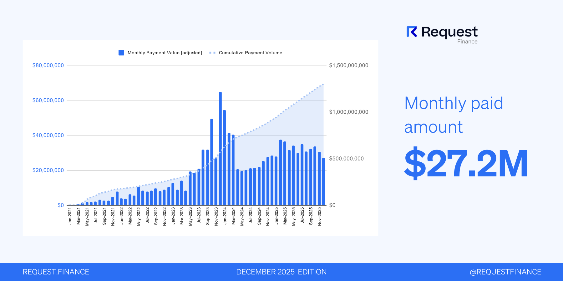 Welcome to a new monthly edition, where we review Request Finance’s usage metrics since our last update.